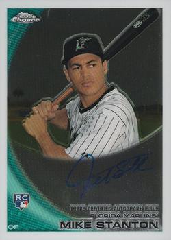 3) Giancarlo Stanton, OF Marlins – Hold an additional spot on the financial mountainside, as his $325 Million deal goes through 2027. Another player with the mixed result of success and injuries, he has a MVP award but only four seasons where he played 125 games or more. His 2010 Topps Chrome RC Auto will cost you $100.