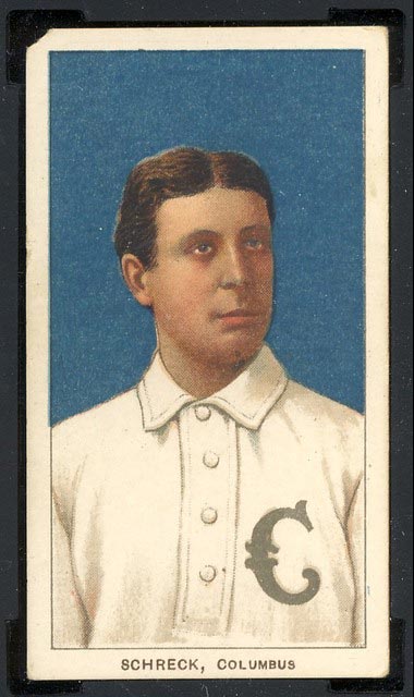 > Ossee Schreck, Columbus Senators C – A good catcher, he was Rube Waddell’s battery mate for six years with Connie Mack’s Philadelphia A’s. He was born Ossee Freeman Schreckengost.